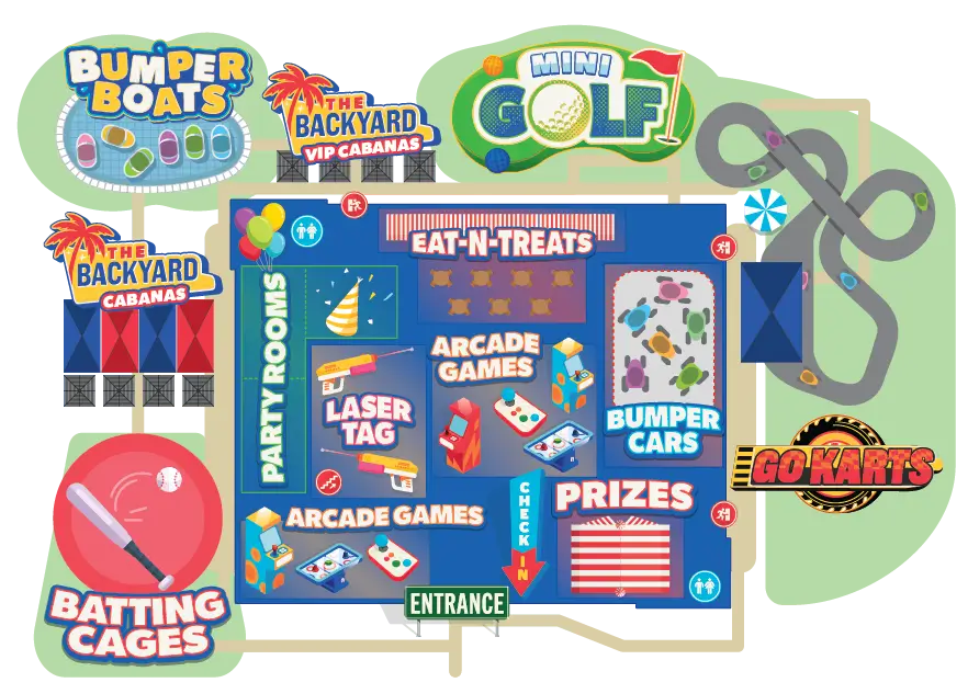 Get ready to explore every corner of the park with our brand-new interactive map—your personal guide to nonstop excitement! Click around to uncover all the action, from heart-pumping attractions like go karts, bumper boats, and mini golf to the can’t-miss fun inside our arcade and batting cages. Whether you’re planning a family day, a birthday bash, or just a spontaneous weekend adventure, this map makes it easy to find your favorite spots and plan your perfect day of fun in the sun at Boomers Boca Raton.